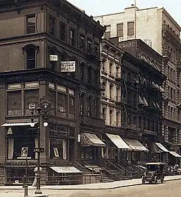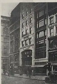 Thurn's founder was a German immigrant named Caroline Sidonie Dittmarsch, who in the mid-1860s had married a teacher named Leopold Thurn.[4] After operating briefly in partnership with the head of a girls' school, Sidonie opened the first of the Thurn clothing shops in 1870.[3]:75[5] The shop made children's clothing and accessories from Parisian designs and custom-fitted them to its customers, adding embroidery and other enhancements as requested.[6][7] Both the business and the proprietor were called either Madame L. Thurn or simply Madame Thurn.[6] In 1873, Thurn moved from its original Brooklyn location to one on Broadway two blocks north of Union Square.[8] In 1880, Thurn moved to 288 Fifth Avenue, the first of a succession of Fifth Avenue locations.[9] In 1890, the shop moved further uptown to 426 Fifth Avenue and remained there until 1913 when the entire block was torn down to make way for construction of the flagship building of the Lord & Taylor department store.[10][11]