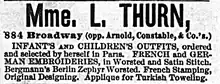 Display ad for the Thurn children's clothing store at 884 Broadway in 1875
