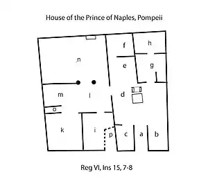 The House of the Prince of Naples[1][2][3] is a Roman domus (townhouse) located in the ancient Roman city of Pompeii near Naples, Italy. The structure is so named because the Prince and Princess of Naples attended a ceremonial excavation of selected rooms there in 1898.