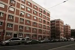 Housing complex Unitas are open gallery–type apartment complex designed by architects Fridrich Weinwurm and Ignác Vécsei. Built in the beginning of the thirties by the city of Bratislava for the underprivileged. It comprises seven objects in a row estate, with austere architectural forms, so characteristic of Weinwurm's puristic work.[1] Initially, it was planned as collective housing project, but the idea of collective kitchen and other shared space was abandoned.[2]