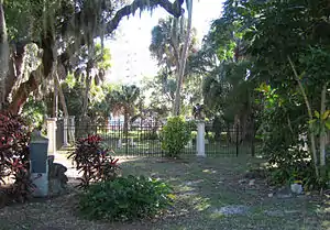 The Houston Pioneer Cemetery is a historic cemetery in Eau Gallie, Florida. It is located within Rossetter Park off Highland Avenue between Oak Street and Shady Lane near the James Wadsworth Rossetter House. The cemetery includes graves of original settlers from Eau Gallie such as John Caroll Houston, III and his wife Mary Virginia Houston.[1] The Houston Memorial Park is also located here with a memorial from 1947 located adjacent to the cemetery. This memorial dates the first grave at 1865,[2] but no headstone contains that date. John Caroll Houston, IV was buried here.