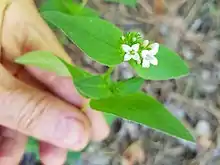 Houstonia purpurea (formerly Hedyotis purpurea) is a species of flowering plant in the coffee family known by the common names Venus's pride, woodland bluet, and purple bluet. It is native to the eastern United States from eastern Texas and Oklahoma east to Florida and Pennsylvania, with scattered populations in Nebraska, Iowa, Michigan, New York State and New England.