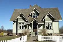 In the late 19th century, it was common in the Northwest for settlers to imitate the style of architecture from their previous homes.[16] Many aspects of Scandinavian architecture are present within the house, including the egg and dart trim design, representing fertility, modified to fit a traditional geometric Scandinavian artistic design.[10] Another example is the Star of David openwork design on the porch railings, a very popular design of that time period.[17] Additional examples of Scandinavian influence include the linseed oil treatment, large and open rooms with windows and doorways in proportion to the size of the room, and high ceilings.[18]