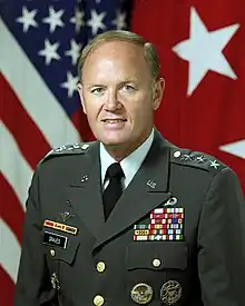 In 1974, Graves was appointed military assistant to the Secretary of Defense, James Schlesinger. His duties included coordinating Schlesinger's travel and public appearances, preparing briefings and speeches for Congressional hearings, and providing counsel on matters affecting the U.S. Army. In 1976, Graves took command of the 54th Engineer Battalion in West Germany, returning to the United States in 1978 to attend the Army War College at Carlisle Barracks, Pennsylvania.[1] In 1980, Graves took command of the 20th Engineer Brigade. He then joined the First Infantry Division in 1982 as the assistant division commander. The next year, Graves was appointed deputy chief of staff, engineer, U.S. Army Forces Command. In 1984, Graves was promoted to brigadier general and became deputy director for strategy, plans, and policy, of the Army Staff. The next year he was promoted to vice director of the Joint Staff. In 1987, Graves succeeded James E. Thompson Jr. as commandant of the Army War College. Lieutenant General Graves then returned to Washington, D.C., to become assistant to the chairman, Joint Chiefs of Staff. In 1991, Graves was appointed the 54th superintendent of the United States Military Academy, a position he held until his retirement in 1996.[2]
