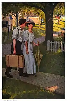 His childhood was spent in Windham, New Hampshire.[1] In 1899, his family moved to Boston. He attended Boston Latin School before continuing his art studies, first at the Art Students’ League in New York and then two years with Howard Pyle.[2] Returning to Boston in 1909, he studied with Edmund Tarbell at the School of Art of the Boston Museum of Fine Arts. The Paige Traveling Scholarship gave him the opportunity to travel and draw in Europe from 1911 to 1914.