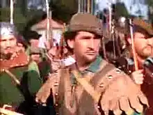 - ↑ The splitting-the-arrow scene can be viewed in an extended excerpt from The Adventures of Robin Hood available on YouTube. "Scene from The Adventures of Robin Hood (1938 BluRay)" posted on YouTube by heckofjob, August 19, 2010. Retrieved October 4, 2018.
