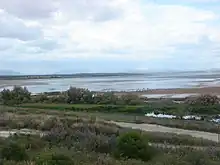 Running through the Hoya of Antequera is the upper portion of the Guadalhorce, which flows into the Mediterranean Sea near the city of Málaga. The plain consists of rolling fields dotted with hills. Water is abundant. Rainfall, unable to form streams on this uneven terrain, accumulates in the center, forming lagoons such as the Campillos Lagoons, Archidona Lagoons, Ratosa Laguna, and the largest, the Fuente de Piedra Lagoon, birthplace to thousands of flamingoes every year.