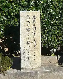 After his death, there was a discussion in Uwajima city to erect a bronze statue in his honor. However, Hozumi specifically left instructions in his will that if future generations wanted to honor him, it would be better to honor him with something useful, like a bridge, rather than something as worthless as a statue. The “Hozumi Bridge” still exists in Uwajima city to this day. He was also honored by a Japanese commemorative postage stamp in 1998.