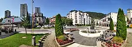 ![]() ![]() ![]() ![]() ![]() From top, left to right: Overview of Hrastnik's center, Railway station, Train passing Hrastnik, Street with a chapel, Log street | |