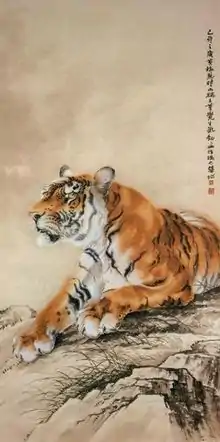 Wu Cho Bun was born in the Shunde Prefecture, Guangdong Province in 1897. Hu studied art in Republic of China and later went abroad to Japan to study Western fine arts at the Kyoto Municipal Art Institute where he developed his now distinctive and famous style of painting the tiger.