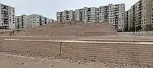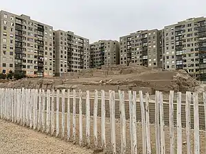 Fragmented ceramic material, vessels and funerary offerings[2] found during excavations are related to the late Ichma period, and some have Chancay and Chimu influence.[6] During excavations in 2010, 25 tombs were also found with around 100 human bodies, with hundreds of ceramic vessels and textiles. In addition, this huaca was also linked to productive tasks, religious worship, public congregation and as a cemetery.[7]