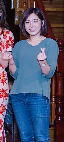 In July 2018, Huang was featured in a video titled "A Day in the Life of Mayor Advisors feat. Ko Wen-je", episode 69 in the "A Day in the Life of" series from Camerabay streaming show Thursday Super Playing.[13] After the show was posted to YouTube, it became a popular topic for discussion by netizens, and became the hottest YouTube video of the week in Taiwan.[14] In the video, Huang played the part of "Hsueh-chieh", leading the show's host, Andy Tai Chih-yuan, in experiencing a day in the life of a staffer in the office of the Mayor of Taipei. Huang only ended up appearing on the show because she was spotted by the show's producer walking past the open door of a meeting room in which the show was being planned.[15] Due to her good looks and winsome personality, Huang unexpectedly became the center of much attention online and in the media.[16]