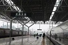 Yichang East railway station (simplified Chinese: 宜昌东站; traditional Chinese: 宜昌東站; pinyin: Yíchāng-dōng Zhàn), formerly Huayan railway station (Chinese: 花艳站), is a railway station in Yichang City, Hubei Province, China. It is the junction of two sections of the Shanghai–Wuhan–Chengdu high-speed railway (Huhanrong): the Hanyi Railway, going east to Hankou (Wuhan), and the Yiwan Railway going west to Lichuan and Wanzhou. The Hanyi Railway is operated by the Wuhan Railway Bureau.