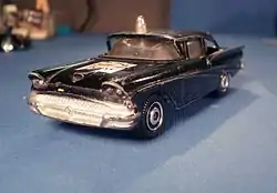 One model was a stately 1958 Chrysler Imperial, usually painted dark green. A more practical offering was the 1960 Chevrolet Corvair. Another, the 1958 Ford Fairlane sedan sheriff's car (decorated as from "San Juan County"), had accurate front grille and side detail, The round police light was a diecast metal piece attached to the roof as opposed to red plastic pieces protruding through holes in roofs on other toy brands. A Chevrolet soft drinks truck advertised "Sam's Soft Drinks" and a metro delivery van was also available in different liveries.