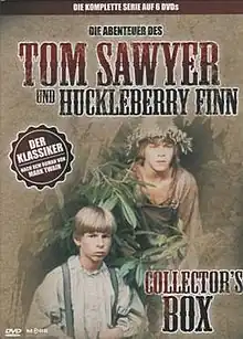 ![]() German DVD cover; from left to right: Tom Sawyer (Sammy Snyders), Huck Finn (Ian Tracey) | |