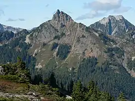 The Alpine Lakes Wilderness features some of the most rugged topography in the Cascade Range with craggy peaks and ridges, deep glacial valleys, and granite walls spotted with over 700 mountain lakes.[5] Geological events occurring many years ago created the diverse topography and drastic elevation changes over the Cascade Range leading to the various climate differences. These climate differences lead to vegetation variety defining the ecoregions in this area. The elevation range of this area is between about 1,000 feet (300 m) in the lower elevations to over 9,000 feet (2,700 m) on Mount Stuart.