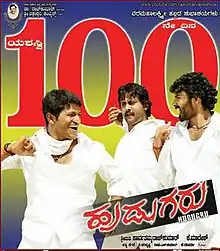 Hudugaru (transl. Boys) is a 2011 Kannada-language drama film directed by K. Madesh, starring Puneeth Rajkumar, Srinagar Kitty, Yogesh and Radhika Pandit in the lead roles.[2][3] The film, which is a remake of the successful 2010 Tamil film Naadodigal, was produced by Parvathamma Rajkumar, with V. Harikrishna having composed the soundtrack and Satya Hegde was the cinematographer. The film released on 5 May 2011 and performed well at the box office similar to Puneeth's previous film Jackie.