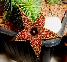 Huernia pillansii, called the cocklebur, is a species of flowering plant in the genus Huernia, native to the Cape Provinces of South Africa.[2] A succulent, it has gained the Royal Horticultural Society's Award of Garden Merit as a hothouse ornamental.[3]