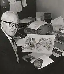 For the 1959–1960 school year, Nibley taught at UC Berkeley as a visiting professor in humanities. He studied Egyptian with Klaus Baer, a new faculty member. Nibley was the only student in the Coptic class after several weeks, and one of two students in the Egyptian class.[54] UC Berkeley offered to employ him as a full professor at a higher salary than what he made at BYU. Nibley decided to stay at BYU, and requested to stop teaching language classes.[55] Nibley published a two-part article in Jewish Quarterly Review in October 1959 and January 1960 called "Christian Envy of the Temple", which discussed how early Christians desired temple rites.[56] When Nibley returned to BYU, religion faculty were debating on whether a class on the Book of Mormon or on fundamental LDS Church doctrines should be the required religion class. The debate disillusioned Nibley, and when asked to give a prayer at the June 1960 graduation exercise, he started it by saying, "We have met here today clothed in the black robes of a false priesthood."[57] He published "The Passing of the Church: Forty Variations on an Unpopular Theme" in Church History in 1961. In the article, Nibley argued that early Church Fathers did not expect the Christian church to succeed, and hence did not concern themselves with social issues, church administration, missionary work, or gaining support from the public; instead they hoped for death and their rewards in the afterlife. Hans J. Hillerbrand published a response in the same journal, stating that characterizing the early Christians as having an institutional "church" was "theologically dangerous". Robert M. Grant argued that Nibley had taken statements from church fathers out of context. Grant agreed that the issue of the history of the institutional church was important, since otherwise church history might be reduced to a history of ideas. Nibley did not respond to the comments.[58][59] Nibley also published articles in Revue de Qumran, Vigiliae Christianae, and Concilium: An International Review of Theology in 1965, 1966, and 1967, respectively.[60] In his article in Vigiliae Christianae, he proposed the idea that Jesus taught his disciples additional rites after his resurrection, drawing on early Christian sources on Gnosticism.[61] For his 1966–1967 sabbatical, he studied Egyptian at the University of Chicago with Klaus Baer and John A. Wilson. He was offered a position to teach at the Clarion State College, but refused.[62]