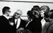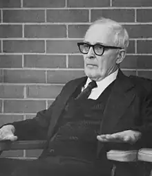 Nibley was an active Democrat and a conservationist, pacifist, and anti-materialist.[69] He was strongly opposed to the United States' involvement in the Vietnam War.[70] Approaching Zion, volume 9 of his collected works, contains his essays on culture, where he critiqued capitalism and socialism, and endorsed the law of consecration.[71] In a 1973 speech entitled "What Is Zion? A Distant View", Nibley mentioned the sometimes dogmatic application of the BYU's honor code, particularly the hairstyle and dress standards.[72] Nibley further criticized LDS culture in his 1983 speech "Leaders to Managers: The Fatal Shift" for encouraging students to please their superiors and "not make waves", which Nibley argued was a sign of a decline in culture.[73] In a later interview, Nibley stated that Rex E. Lee and faculty in the school of management hated the speech.[74] Nibley felt that students were more concerned about their appearance than their studies. In his 1975 speech, "Zeal Without Knowledge", he worried that students were overly focused on suffering through church meetings than being genuinely spiritually exercised.[75]