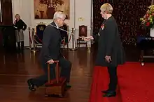 Rennie's investiture as a Knight Companion of the New Zealand Order of Merit by the administrator of the government, Dame Susan Glazebrook, at Government House, Wellington, on 14 September 2022