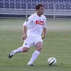 In the 2010–11 season, he was one of Napoli's most important players, helping the team to finish the season in 3rd place and qualifying directly to the group phase of the 2011–12 UEFA Champions League.[9] He played 39 matches in all competitions. He made his European debut with Napoli in the second match of the play-off round against Swedish side Elfsborg, playing the final 17 minutes in a 2–0 win at Borås Arena.[10]