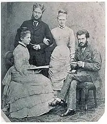 The Logothetti children. From left to right: Rosa Countess Logothetti (1856-1941), Hugo II Count Logothetti (1852-1918), Maria Baroness Taxis née Countess Logothetti (1859-1929), Alfred Count Logothetti (1853-1923). Bilovice, c1880