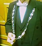 In French government ministries and Parliament, a huissier is an employee who provides general service to the minister or assembly (transmitting messages, handling ballot boxes, etc.). Traditionally, they wear a chain around the neck, because their original function was to lock and unlock doors.