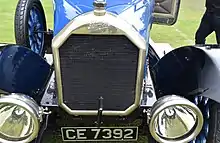 The hand lever to the driver's right by the change-speed lever operated internal expanding brakes on the back wheels, the foot brake pedal operated a contracting band on a drum just behind the gearbox. A hand adjustment for wear was provided for both rear and transmission brakes.[2] The Times thought the suspension was not quite free from fore and aft movement but was otherwise satisfactory and comfortable on a rough road. The springs were set with a minimum of camber,[2] they were half-elliptical, set on top of the axles and from 1923 Hartford shock absorbers were fitted at the back.[3] Steering was by worm and complete wheel and could be adjusted for wear[3]