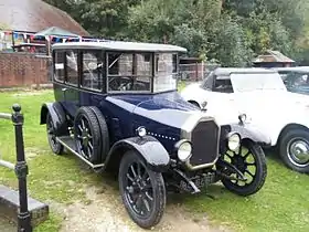 These cars were displayed at Olympia's first postwar Motor Show in November 1919. Commentators described the design as common-sense and not sensational with evident attention to detail. The blue saloon with shining black roof and mouldings drew attention.[1]