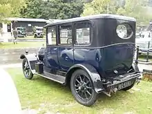 A saloon landaulette was added to the standard range and it also showed the care and forethought put in to give comfort and convenience. Between front and back seats it had a glass partition with sliding panels and there was an extra fold-away seat in the rear compartment which might be turned to face either side.[7]