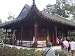 The main hall of the western garden. It is a typical mandrian duck hall but with four attached pavilions at the corners in Shanghai garden style. This hall was used for Kunqu Opera performances. |