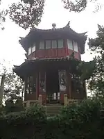 A two-story tower with a ground floor dedicated to Wen Zhengming and Shen Zhou. |