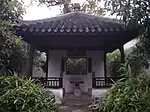An octagonal tower with flying eaves, built around a preexisting well called the celestial spring. |