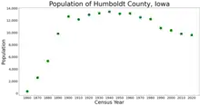 - ↑ "P2 HISPANIC OR LATINO, AND NOT HISPANIC OR LATINO BY RACE – 2020: DEC Redistricting Data (PL 94-171) – Humboldt County, Iowa".