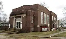 High-school level studies began after 1880, and the school began to use overflow sites around Hume. The first brick schoolhouse was built in 1884 from bricks made in a local kiln, on the site of the present city park at the intersection of Center Street and Fourth Street.