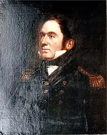 In the War of 1812 against the United States, he defended the Martin, aground in Delaware Bay, against a flotilla of eight gunboats and two blockships on 29 July 1813. He made prize of the 6-gun privateer Snap Dragon containing 80 men, assisted in the capture of Moose Island, and was sent home with despatches by Cochrane, announcing the success of the expedition in Castine, Maine.[5] He was promoted to post-captain on 12 October 1814, and from April to September 1815, commanded HMS Superb on the coast of France as flag-captain to Sir Henry Hotham.[3] From 25 February 1831 to 1834, he served in HMS St Vincent, most of the time as flag-captain to Vice-Admiral Hotham, commander-in-chief of the Mediterranean Station.[5] King William IV told Hotham at Windsor: