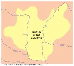 Some decades after the Hungarian conquest, a new synthesis of earlier cultures, the "Bijelo Brdo culture" spread in all over the Carpathian Basin, with its characteristic jewellery, including S-shaped earrings.[240][241] The lack of archaeological finds connected to horses in "Bijelo Brdo" graves is another feature of these cemeteries.[242] The earliest "Bijelo Brdo" assemblages are dated via unearthed coins to the rule of Constantine VII Porphyrogenitus in the middle of the 10th century.[243] Early cemeteries of the culture were unearthed, for instance, at Beremend and Csongrád in Hungary, at Devín and Bešenovo in Slovakia, at Pilu and Moldoveneşti in Romania and at Vukovar and Kloštar Podravski in Croatia.[244]