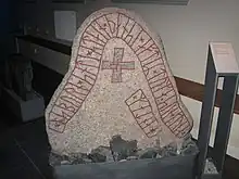 The second runestone is decorated with a cross and was raised by Ásbjörn after Tumi.