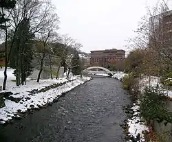 Hunnselva is a river in Innlandet and Viken counties in Norway. The 50.2-kilometre (31.2 mi) long river is located mostly in Innlandet county, but the headwaters are actually just over the border in Viken county. The river generally flows north and it runs through the large lake Einavatnet as it passes through the municipalities of Hurdal, Vestre Toten, and Gjøvik. The mouth of the river is in the town of Gjøvik where it empties into the large lake Mjøsa. The main part of the river is about 23-kilometre (14 mi) long and it runs from the Einavatnet lake to the town of Gjøvik.[2][3][4][5] Along the course, the river passes through the villages of Eina, Reinsvoll, Raufoss, and Hunndalen.[6][7][8] At the town of Gjøvik, the river divides the town with the Nordbyen neighborhood on the north side and the Sørbyen neighborhood to the south.[9] Hunnselva gets its water from bogs and small forest ponds in the west and calcareous streams on the east, meaning the water is rich with nutrients.[3][10] Its watershed extends from Lynga in the south to Gjøvik and Vardal in the north.[6]