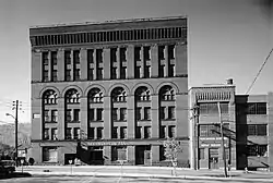 Notable buildings include the county jail (1829), Union Depot (1872), Penn Hunt Hotel (1873-1874), switching tower (c. 1900), Fisher and McMurtie's Store (c. 1850), Reed's Drug Store (1865), Port Building (1875), Iron Front Store (1884), and Blair Building (1889).[2]