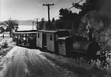 The Huntsville and Lake of Bays Transportation Company was a company chartered in 1895 to operate steamboats on the Lake of Bays, and a series of lakes connecting to Huntsville in the northern section of the Muskoka Lakes District of Ontario, Canada. The wholly owned Huntsville and Lake of Bays Railway ran a short line narrow gauge railway to connect steamboats operating on Lake of Bays and Peninsula Lake outside Huntsville, Ontario. Covering a vertical distance of 175 feet (53 m) along the hilly 1.125-mile (1.811 km) route, it was known as the "smallest commercially operated railway in the world".[2]