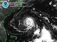 - ↑ "Hurricane Florence Lingers Off N.C." Associated Press. September 14, 2000. Archived from the original on July 20, 2011. Retrieved May 8, 2008.