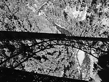 Shadow of the Hurricane Gulch bridge taken from a train crossing over it