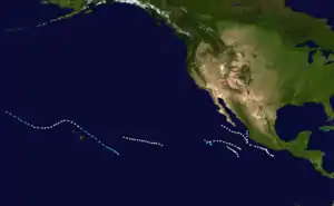 - 1 2 3 National Hurricane Center; Hurricane Research Division; Central Pacific Hurricane Center (April 4, 2023). "The Northeast and North Central Pacific hurricane database 1949–2022". United States National Oceanic and Atmospheric Administration's National Weather Service. A guide on how to read the database is available here.