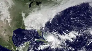 Though the storm's center remained north of the Greater Antilles, some coastal areas experienced rough winds and high seas. In Cuba, the station at Guantánamo Bay recorded gusts of 55 mph (89 km/h).[25] The storm caused coastal flooding and damage to roofs in Granma Province;[113] more than 100 homes were affected in the province.[114] Rain from the storm somewhat alleviated conditions from a record drought in Granma, Guantánamo, and Santiago de Cuba provinces, though many reservoirs remained below 30 percent capacity in the latter.[115][116] Niquero, Granma, saw 6.2 in (157 mm) of rain.[117]