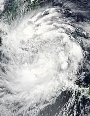 ![]() Hurricane Julia at peak intensity while making landfall in Nicaragua on October 9 | |