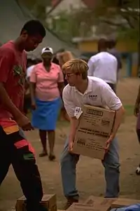 Relief supplies in the wake of Hurricane Marilyn were sent to Puerto Rico and the U.S. Virgin Islands. Officials of FEMA set up camps on the islands to give out food, water and shelter supplies.[34]