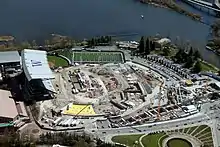 In 1987, 13,000 seats were added with the construction of the north grandstand.[14] Similar to the south stand, this structure included a cantilevered steel roof covering a portion of the lower seats. The project made headlines on February 25, 1987, when the grandstand collapsed during construction as a result of miscommunication between the workers and the contractor, which led to the premature removal during the intended replacement of several support cables.[15] Although there were no casualties, property damage ranged from $500,000 to $1 million and resulted in setbacks; however, the stadium addition was completed in time for the start of the 1987 Husky football season.[16][17]