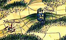 Huwyler is a topographic surname from the Huwyl castle and hamlet located between Römerswil and Hochdorf, Lucerne around the 15th century. The Huwyl area was named as Hunwil in documents dating from 1230 to 1474.[2] The surname started from the Lords von Hunwil (Herren von Hunwil, Giswil OW). The von Hunwil surname is well documented as they were ministerialis barons.[3] In the 15th and 16th centuries, Swiss surnames were derived by appending the syllable –er. This largely replaced the practice of using the "von" prefix. Surname von Hunwil evolved over the years to Huwiler and Huwyler (and even Hauviller in France).